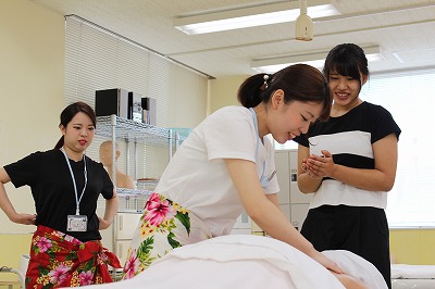 AMコースは参加人数が少ないので、学生や先生と楽しく体験!ネイル体験では「ケア」の仕方を教わりました!