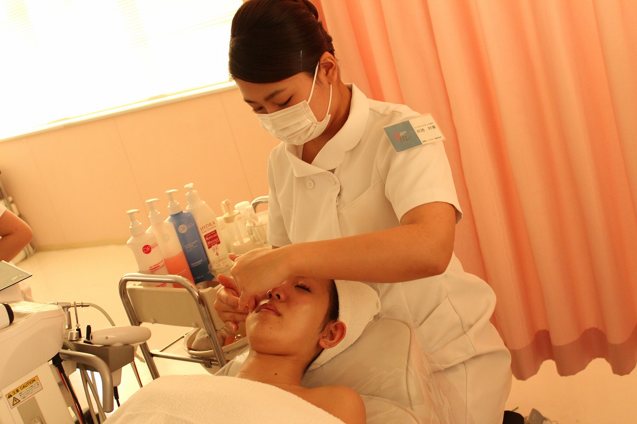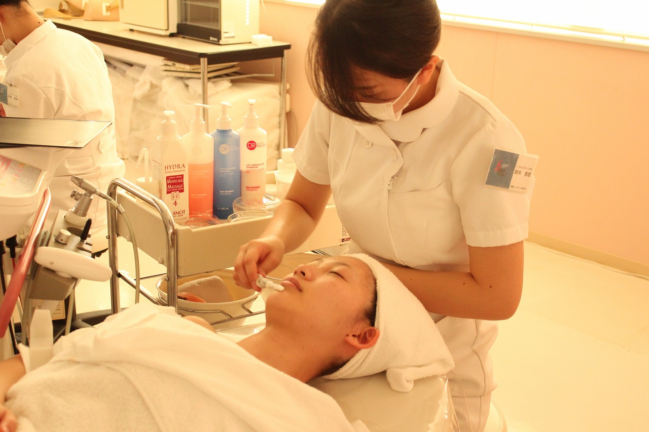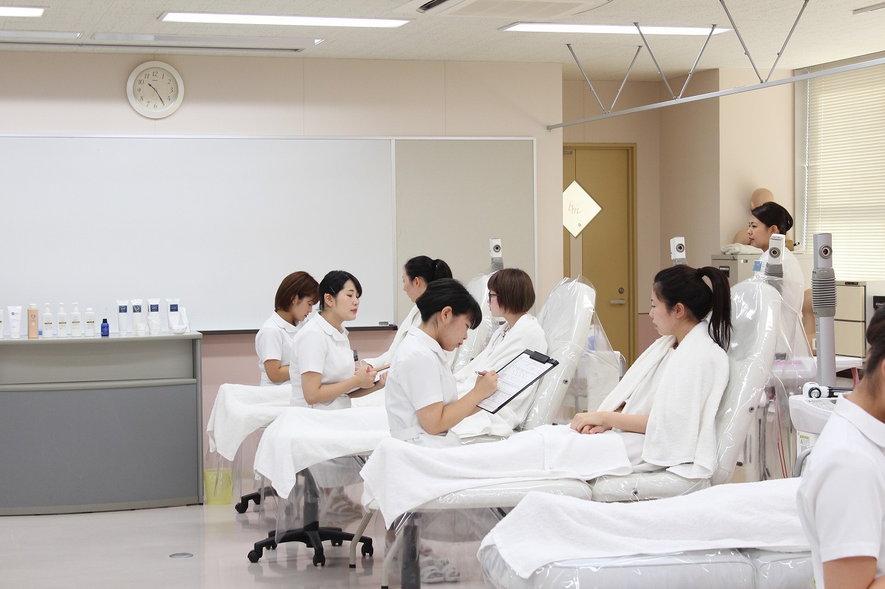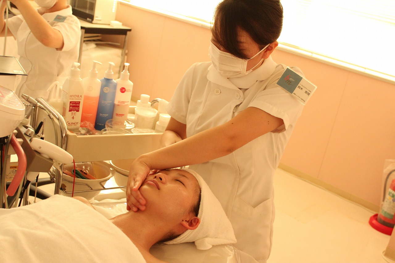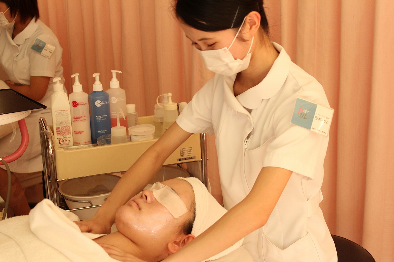 エステを学んでいるトータルエステティック学科の学生が