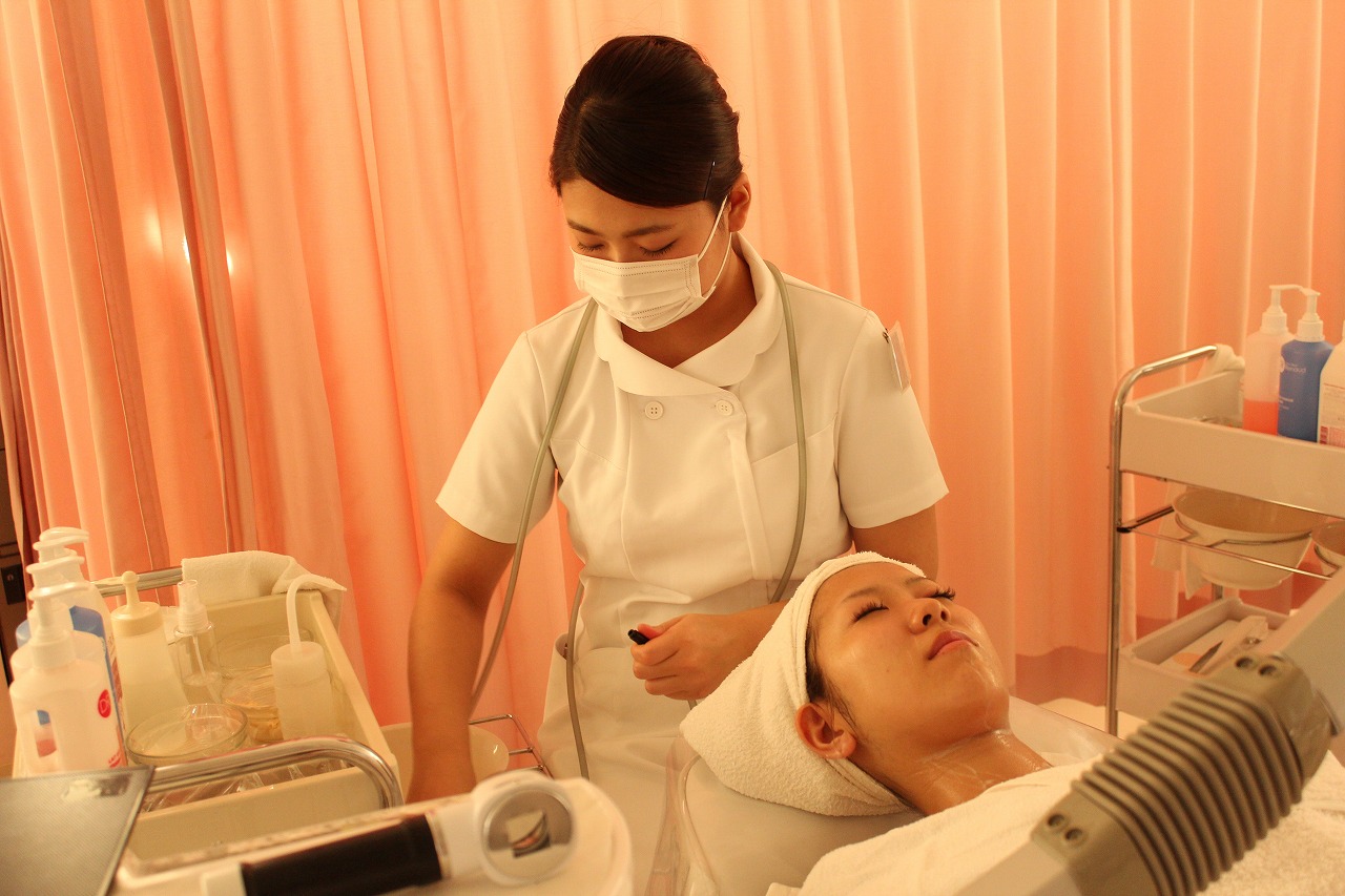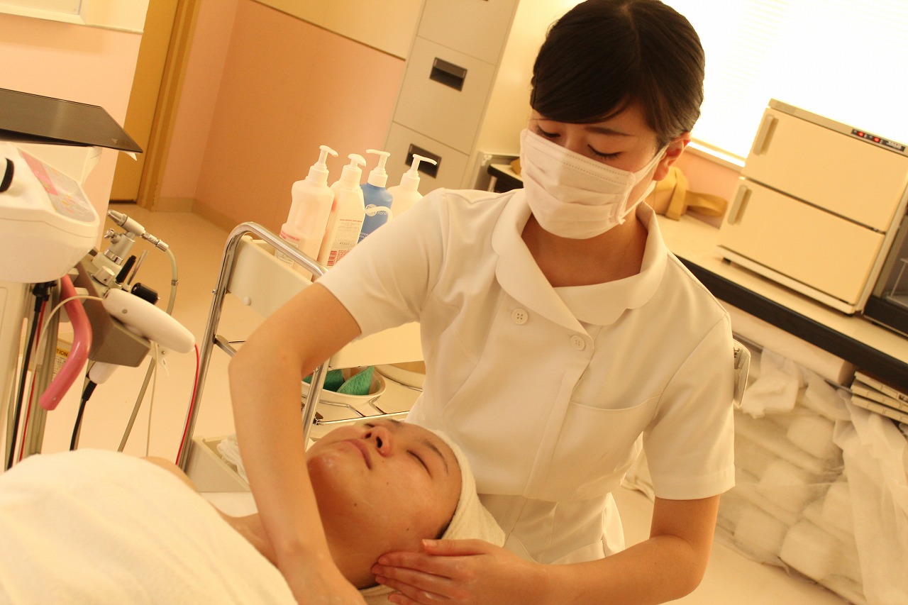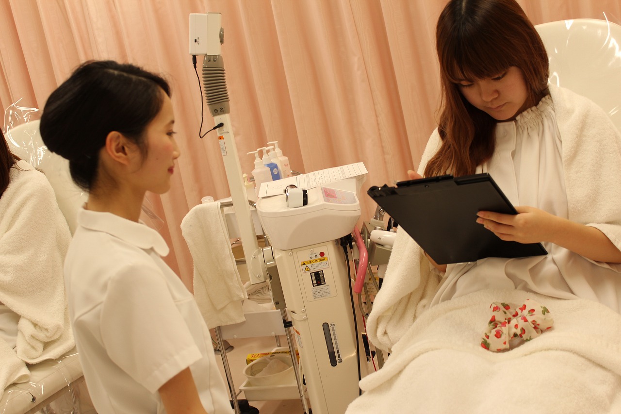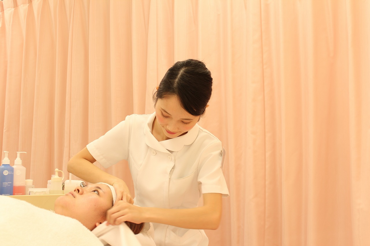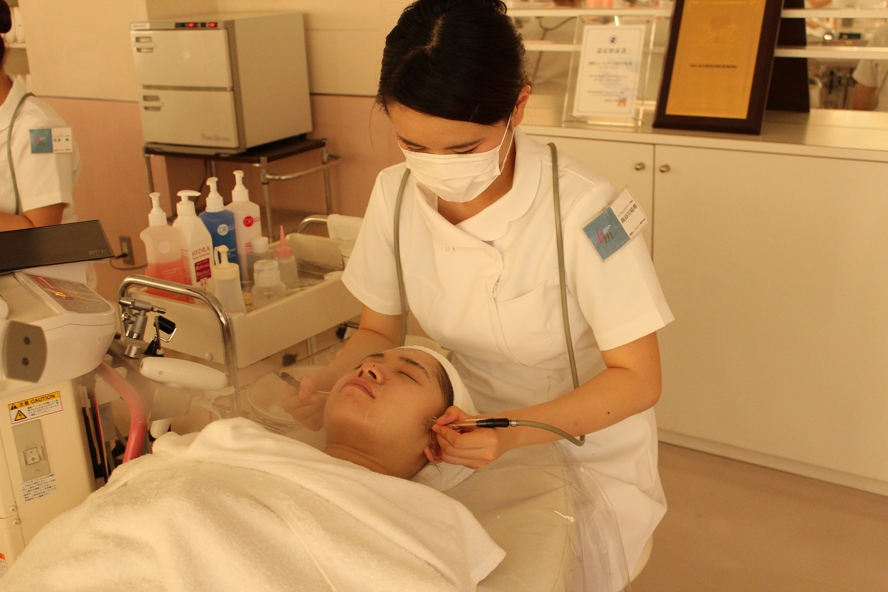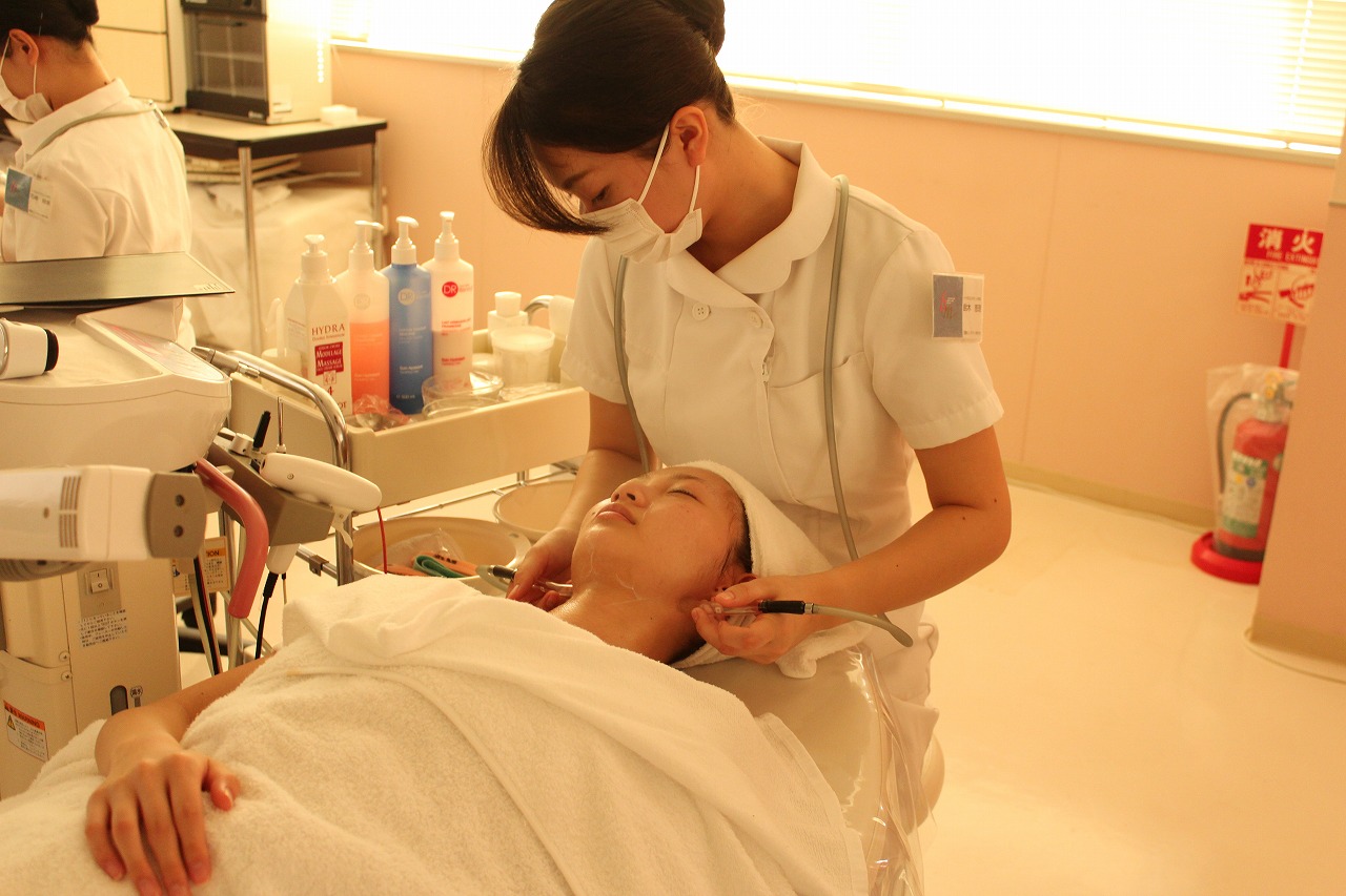 エステを学んでいるトータルエステティック学科の学生が