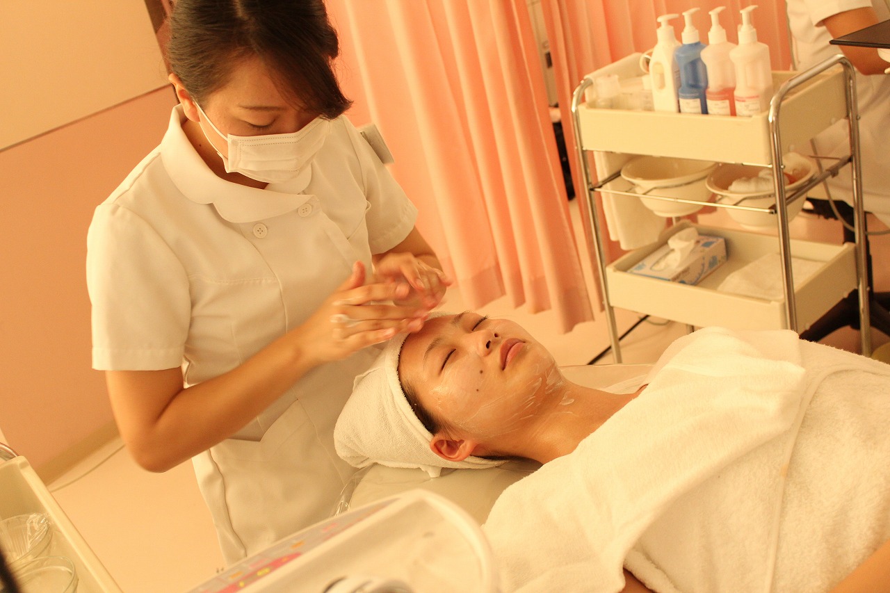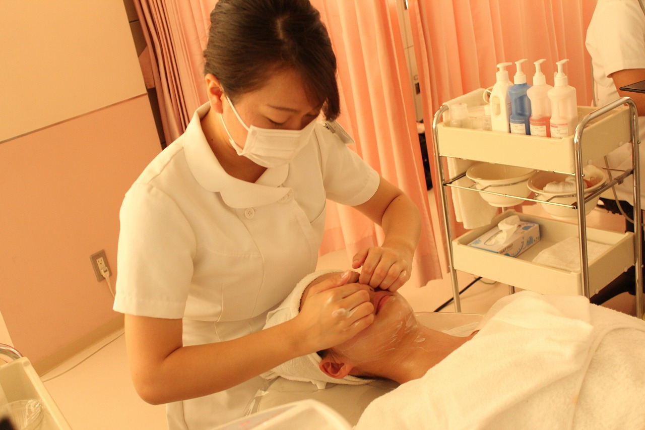 ビューティプロデュース学科の学生にエステを。