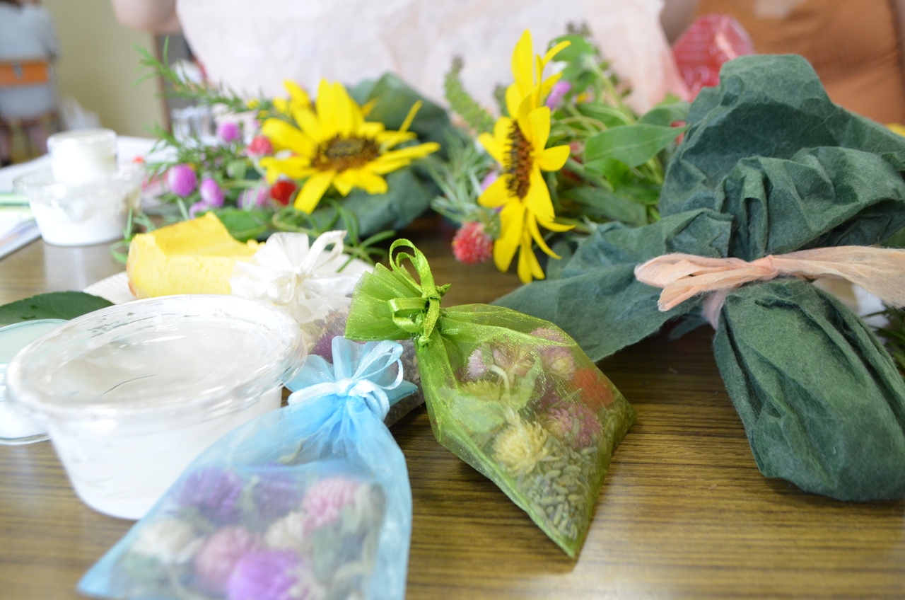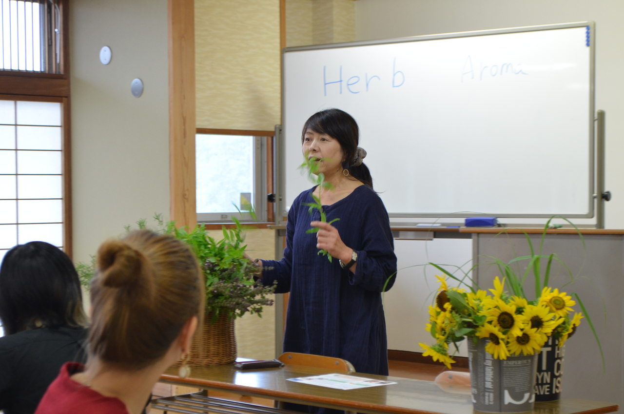 ヨガを行い、ハーブを使った芳香剤作り、ハーブの入ったボディパック作り、そして体の中からもという事でハーブティ―。