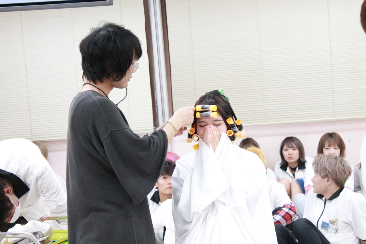 現役の美容師として活躍されているBM卒業生が来校し、後輩の為にパーマの基礎知識から