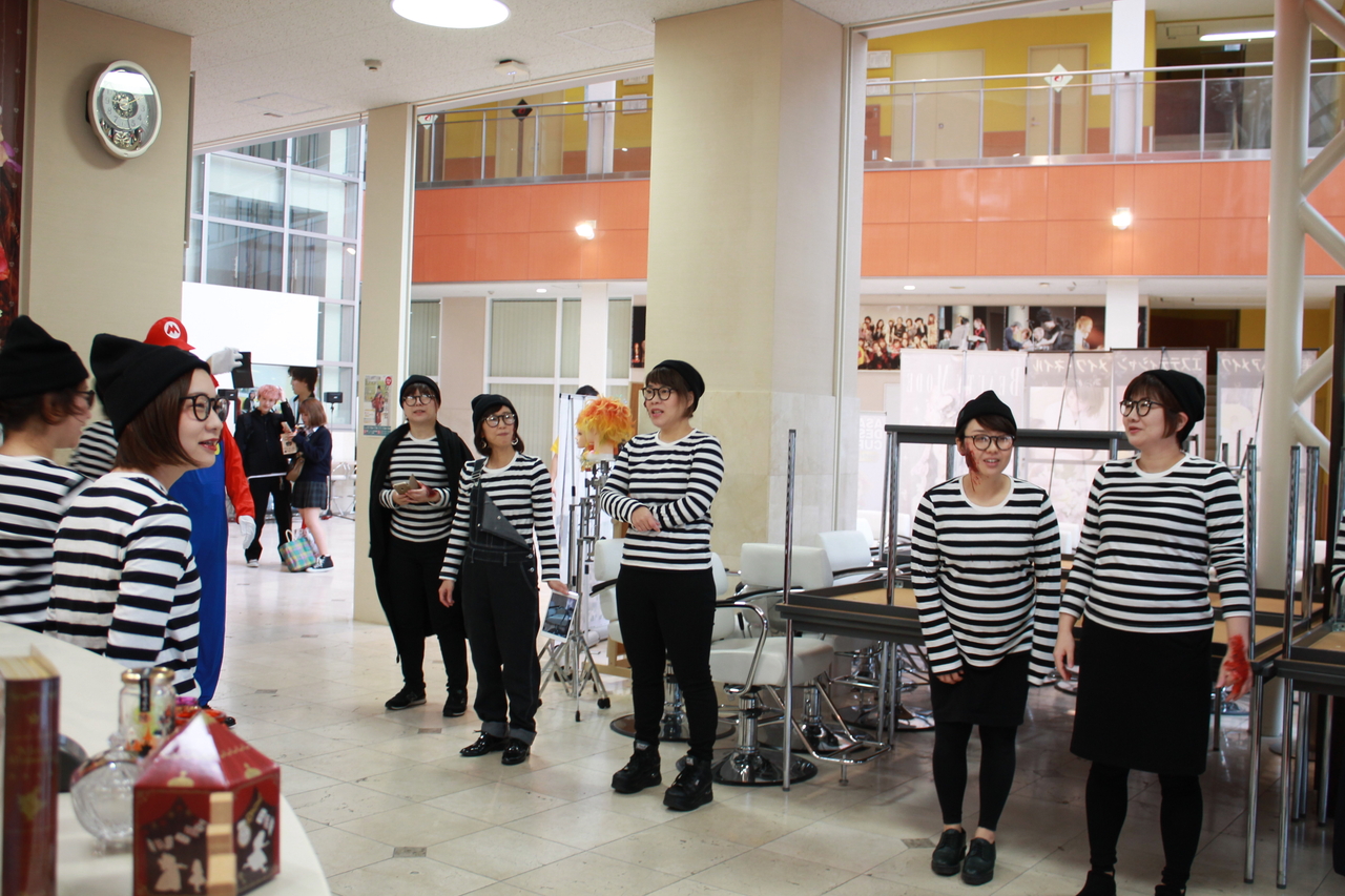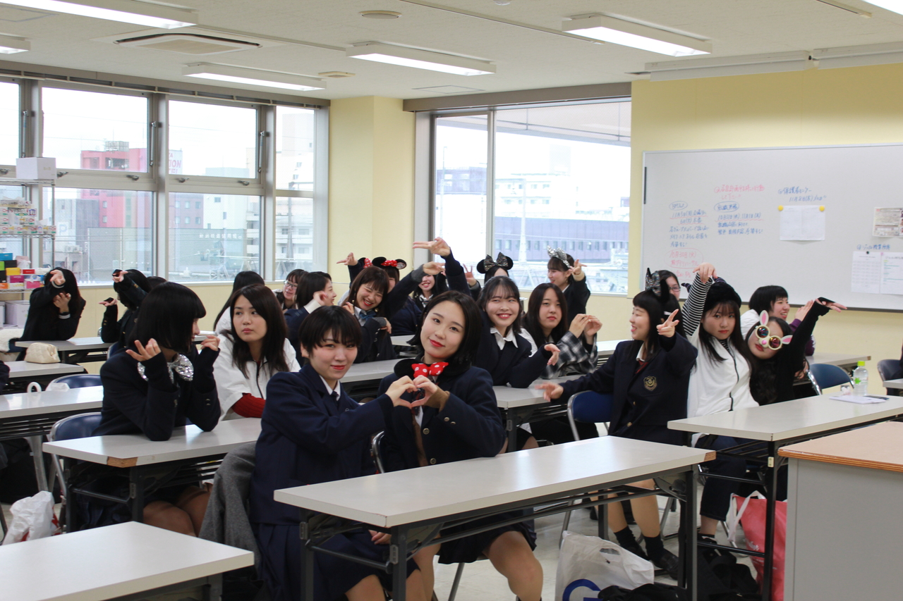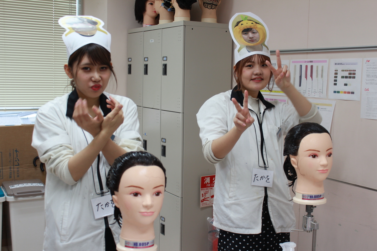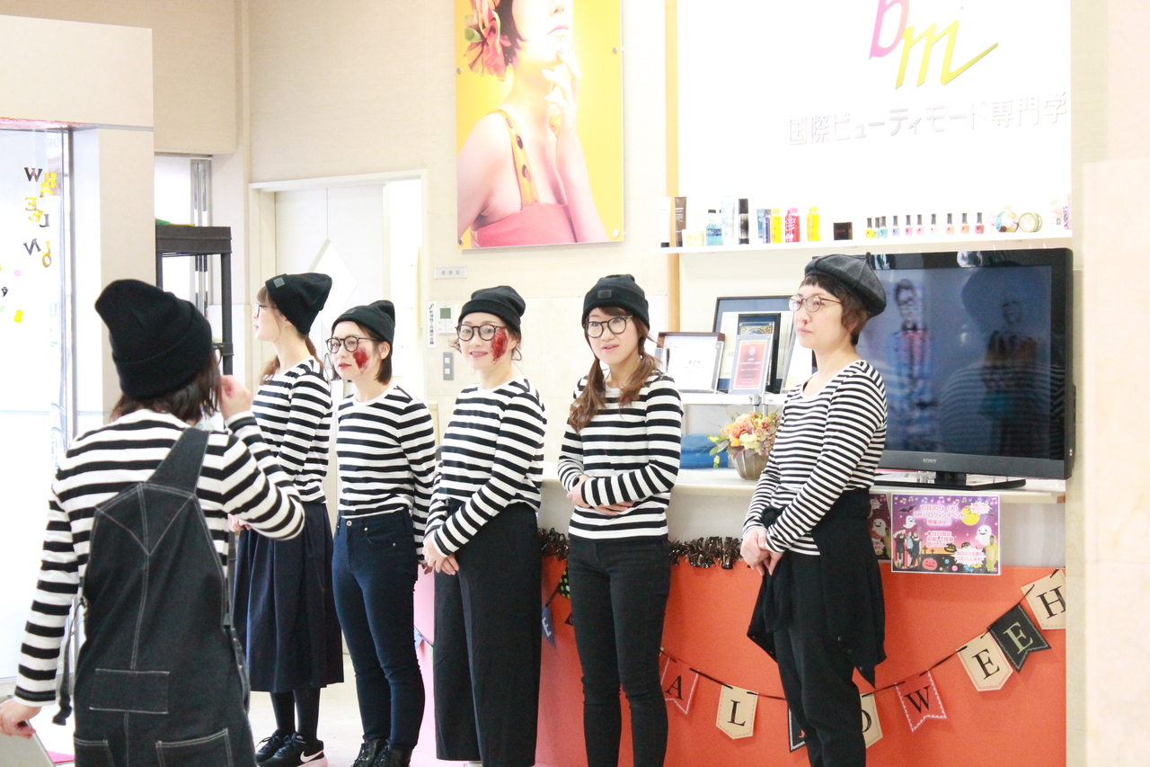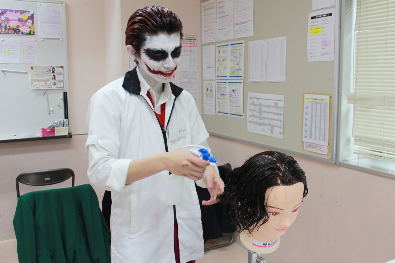 美容学科はそれぞれの仮装で授業を受けております(^-^)