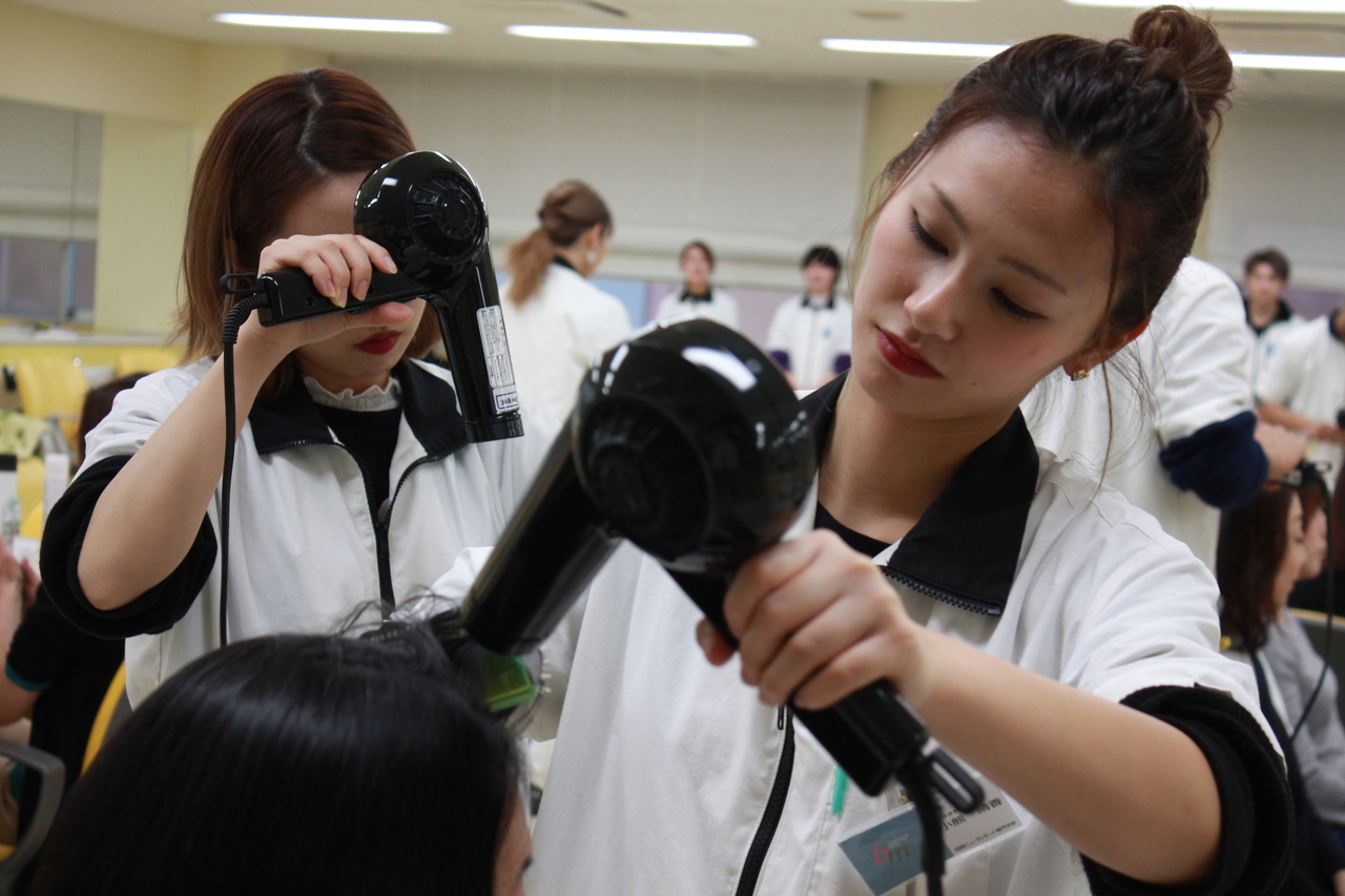 この授業は、美容学科だけではなく、ビューティプロデュース学科、トータルエステティック学科でも行われています。