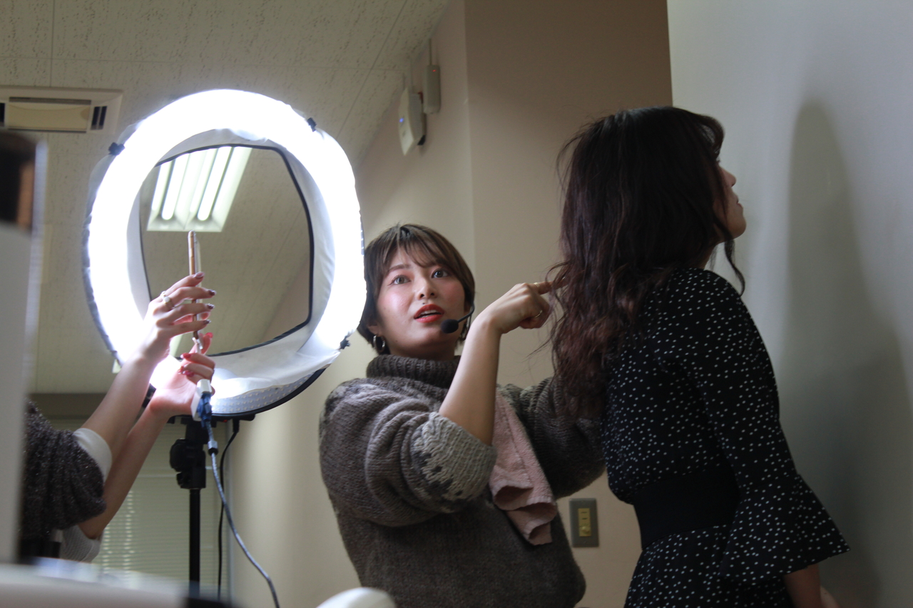 特別講師として柴田さんとアシスタントの、りなぽよさんが来校されました