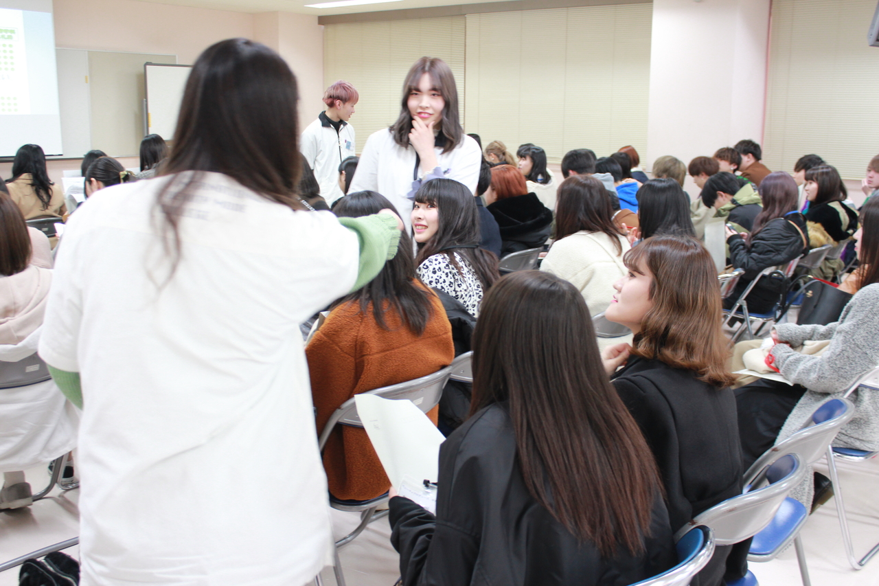 その後は、各学科、クラスに別れコミュニケーションゲームで頭と体を使い、緊張していた空気が和らいでいました!(^^)!