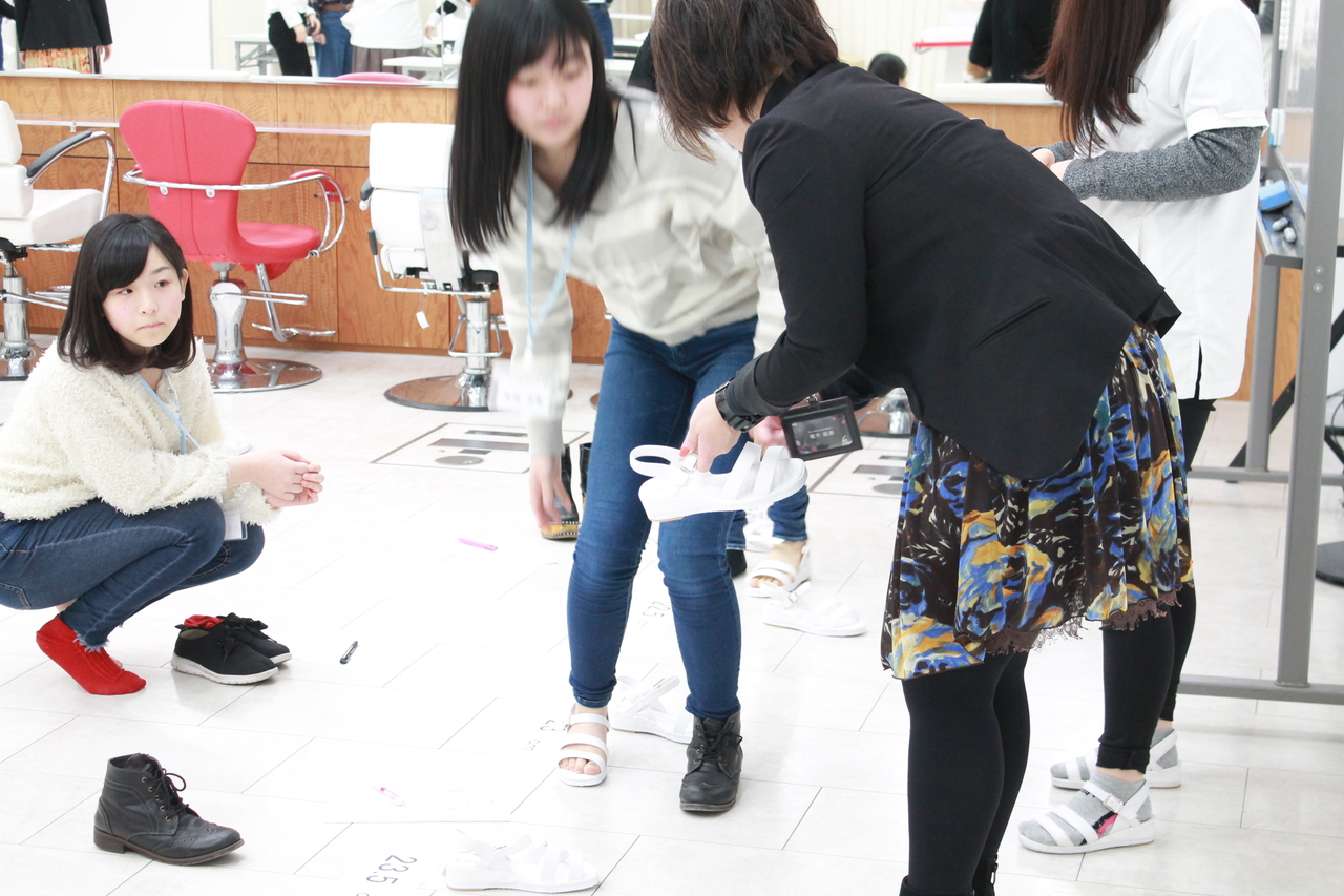 高校生の緊張も少し解けたところで、実習着、実習靴の採寸、教材の注文などもこの機会に行っていました。