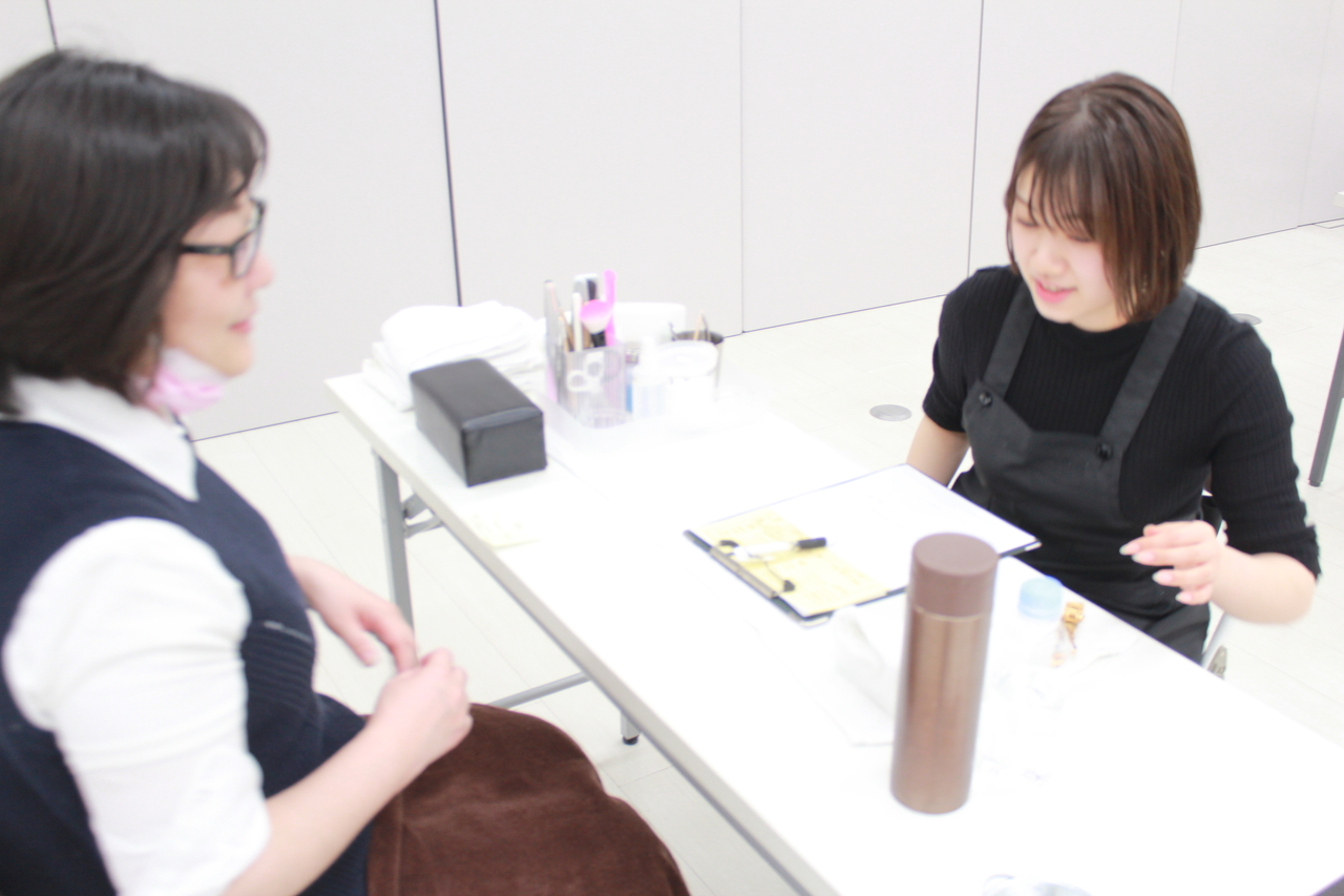 メイクサロンに関しては、予約段階で事前に施術内容の希望を聞いており、当日は好きな色味や、なりたいイメージ、普段のメイクのお悩みなどなど、