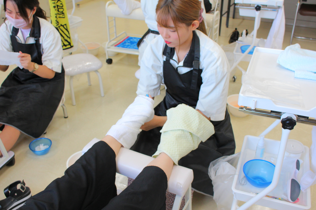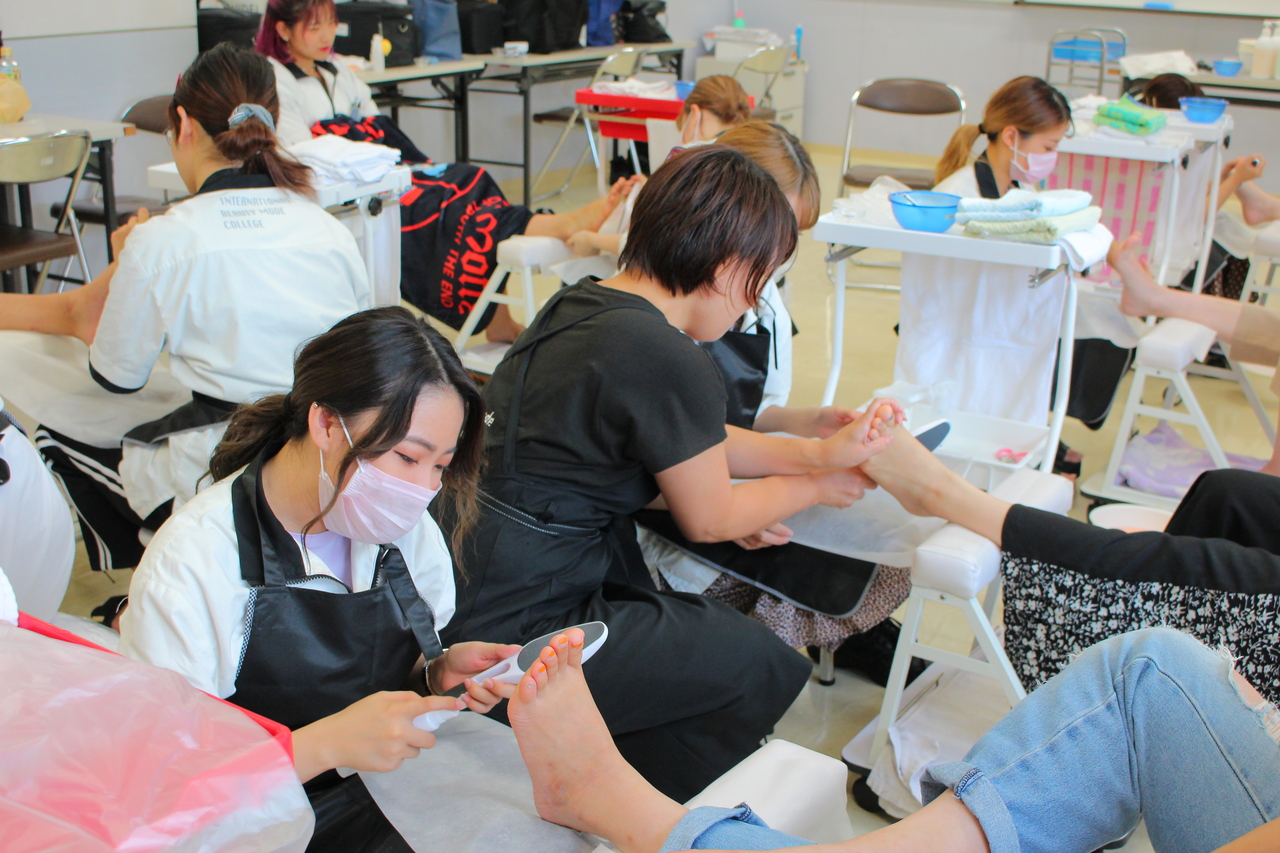 ちなみに今回のネイル授業は、手ではなく足のケアの授業でした!!
