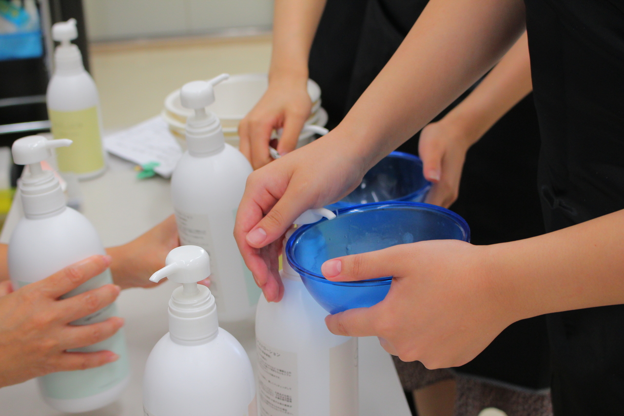 どのように仕上げたいかにより、 混ぜるローションを選んでいました。