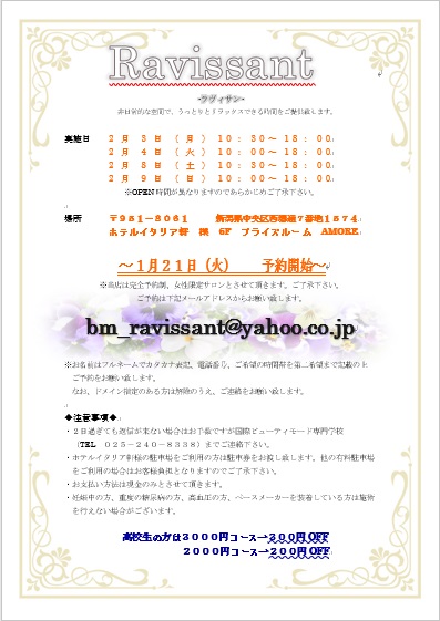 予約 bm_ravissant@yahoo.co.jp