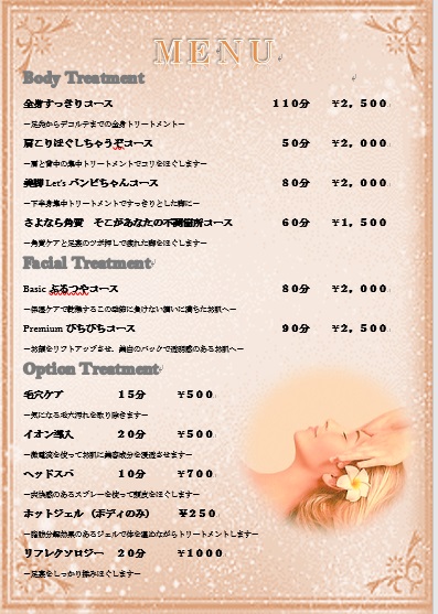 メニュー内容は以下になります。