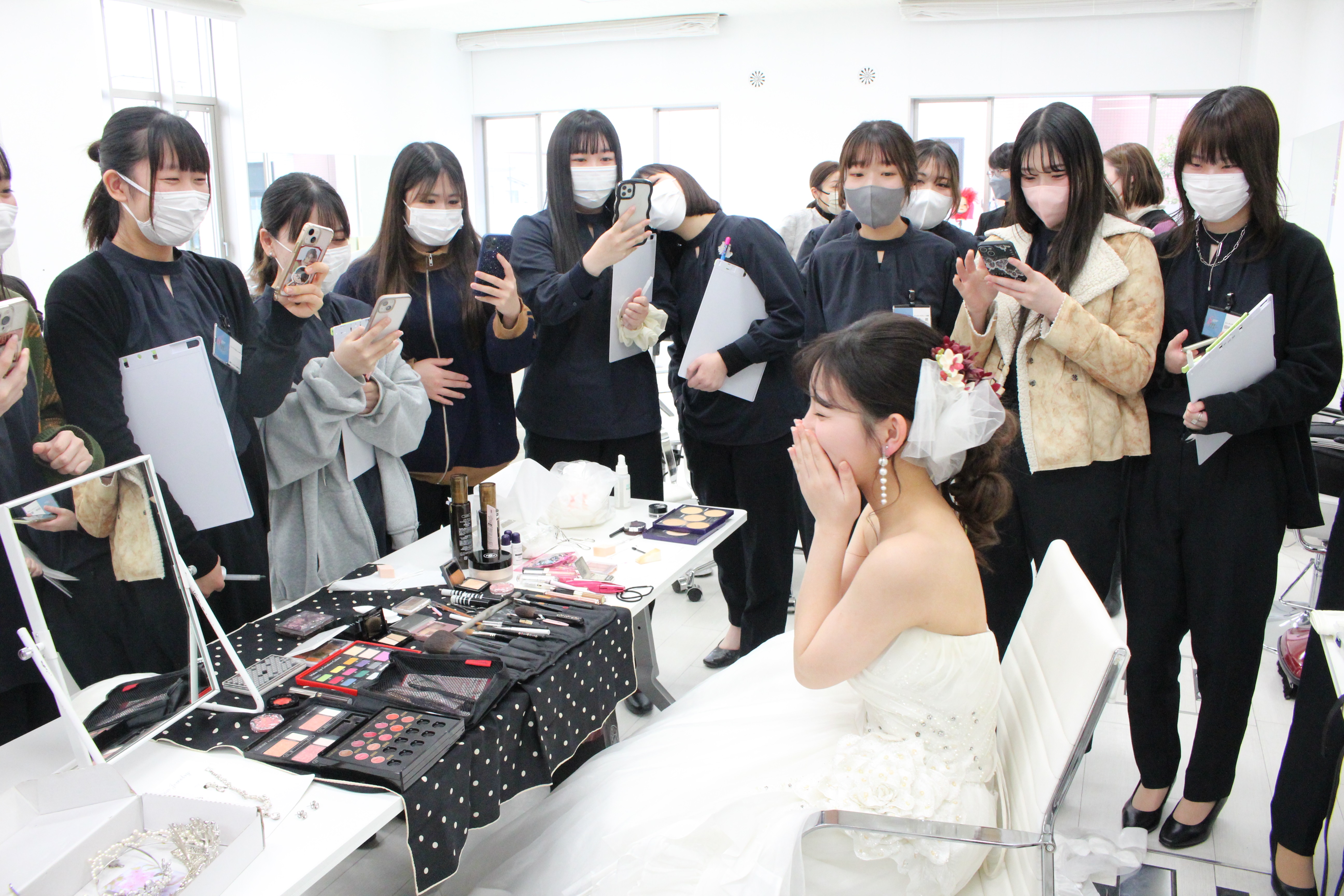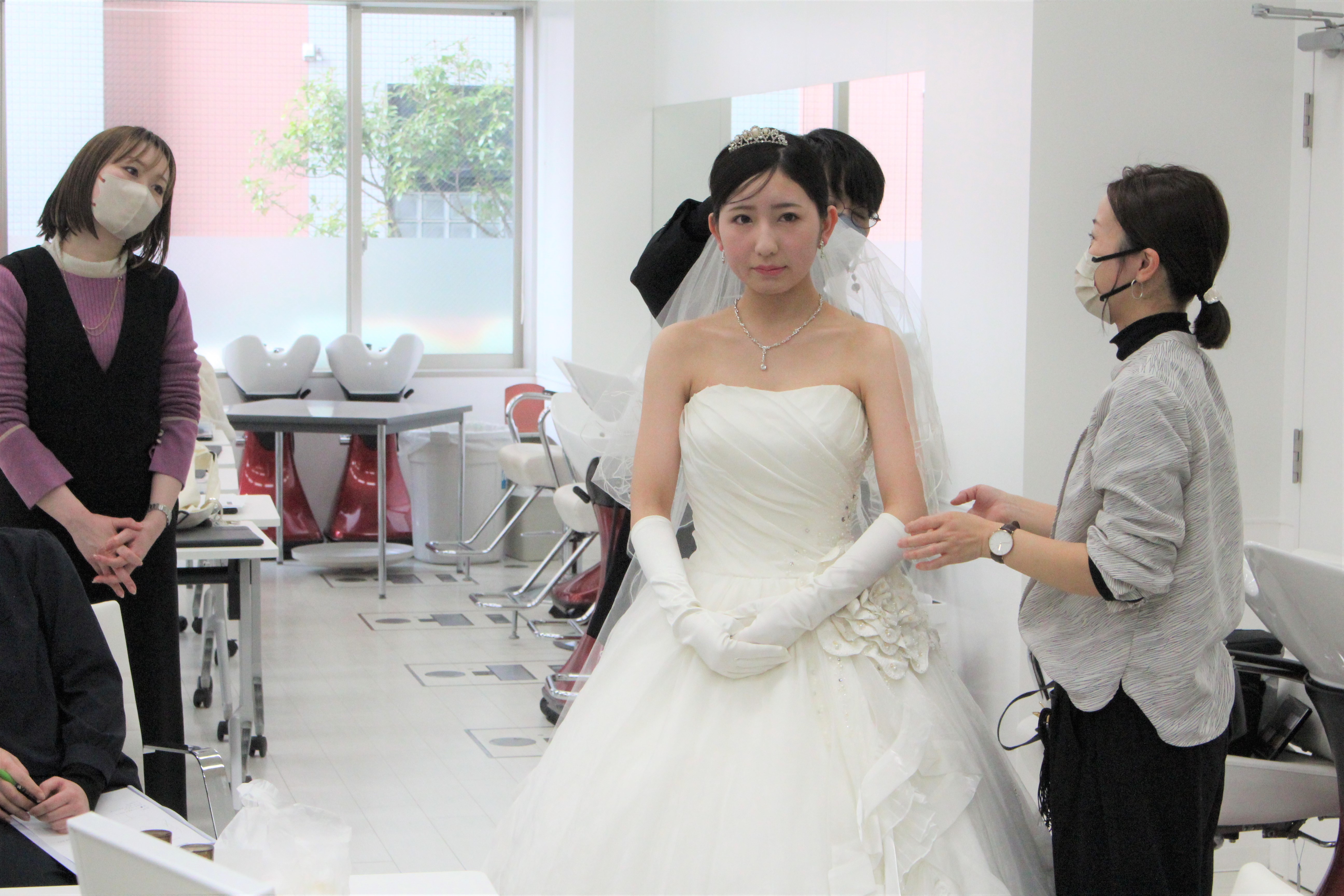 ブライダルの衣装合わせから、ブライダルメイク・ヘアアレンジを一通りデモンストレーションを行いながら指導していただきました!