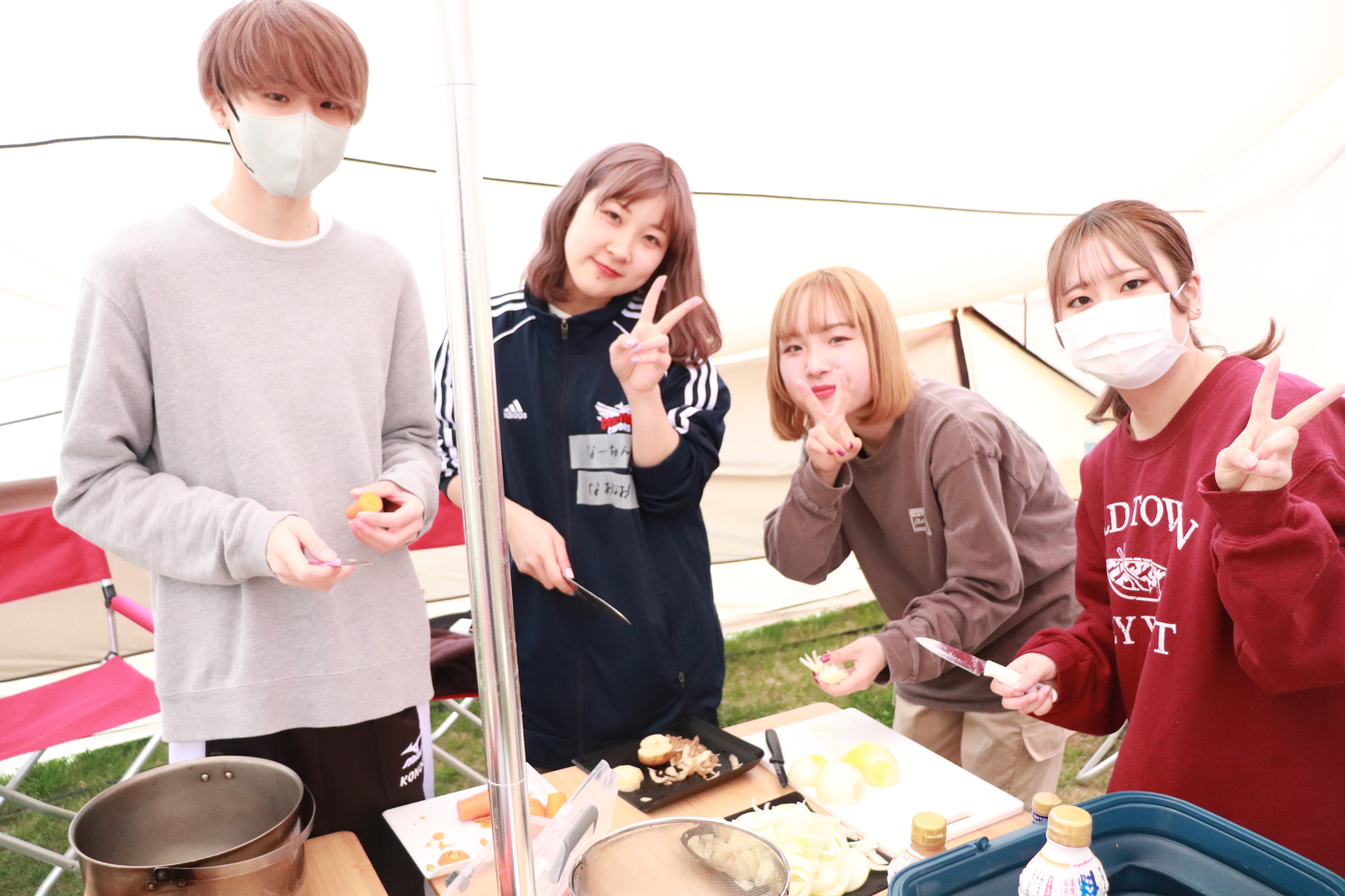 研修後は屋外調理!カレーや豚汁などクラスメイトと協力して