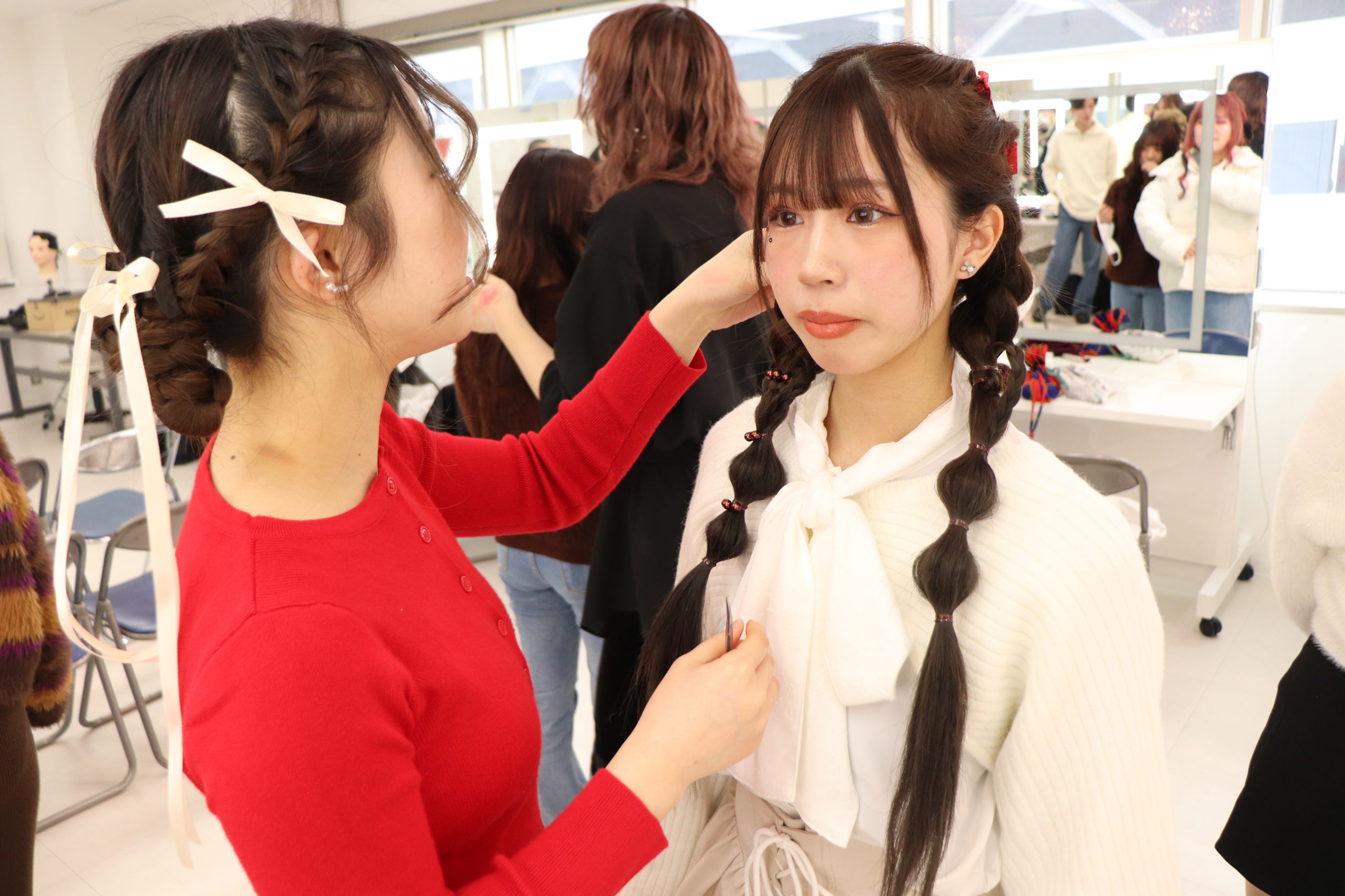 ヘアメイク学科1年生が「バレンタイン」をテーマにヘアメイク実習✂