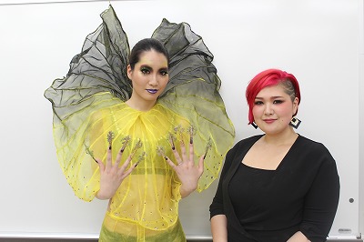 今回は、山口先生と一緒に母校であるBMに来校し、後輩たちへメイクデモンストレーションを見せてくれました。