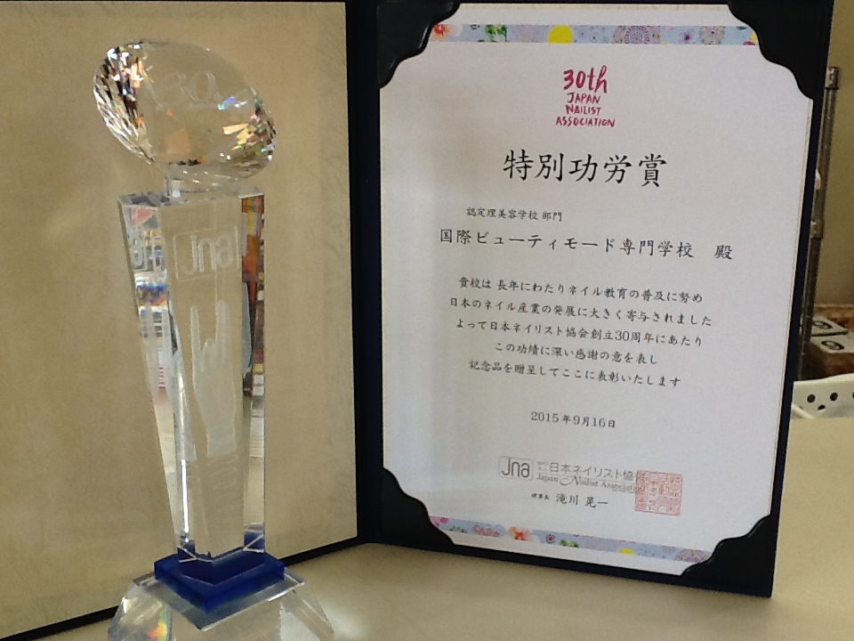 今回、日本ネイリスト協会創立30周年ということで、賞状とトロフィーをいただきました!