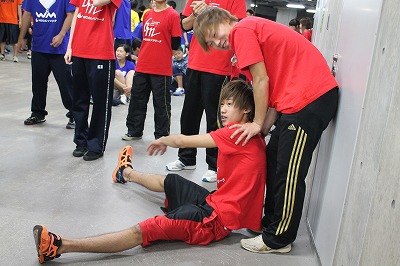 この2人、集合場所でストレッチしていました(*´艸`)