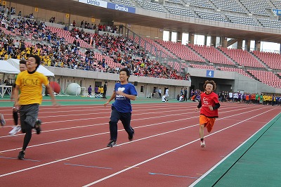 綱引き、リレー、100人サッカーなど。