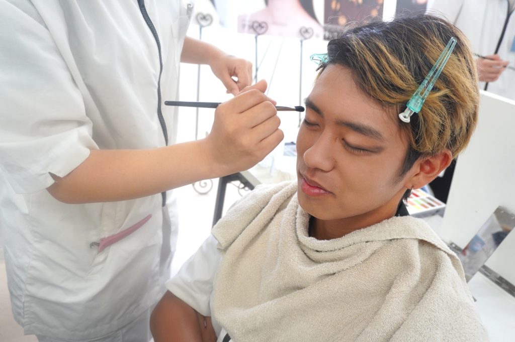 ペアになって相モデルでメイクし合うから、
