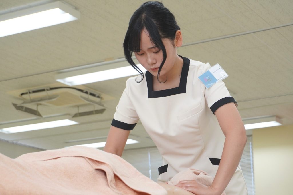 【新潟県で唯一!エステを専門に学べる🌿】エステティックビューティ学科のボディエステ実習