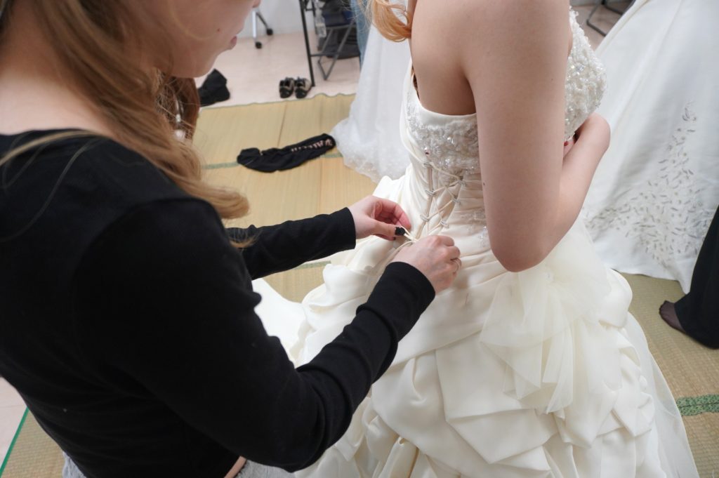 ドレスフィッティングやベールのつけ方など