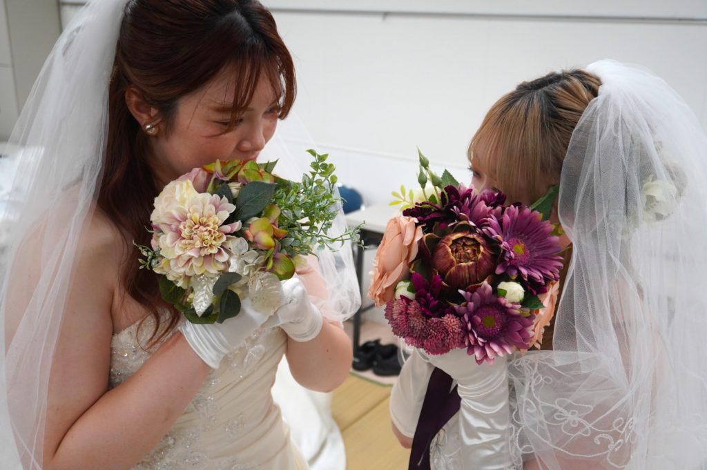 素敵な花嫁姿に教室中に「かわいい~」の声が!