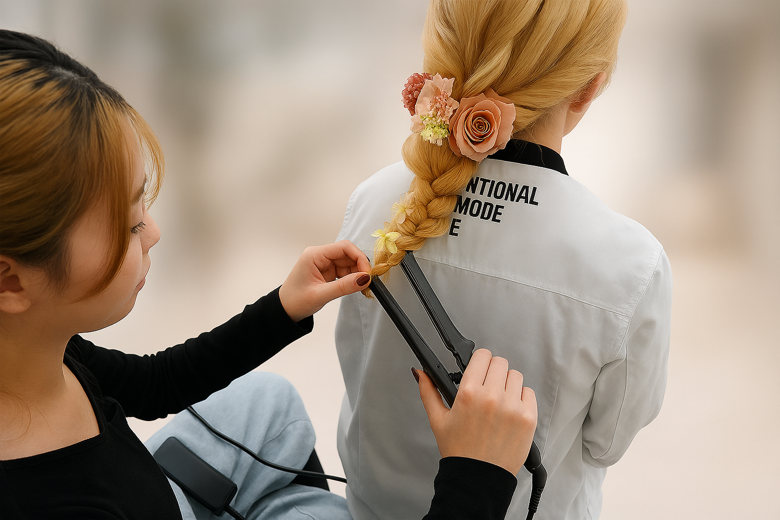 モデルに合わせてヘアメイクを施術した後