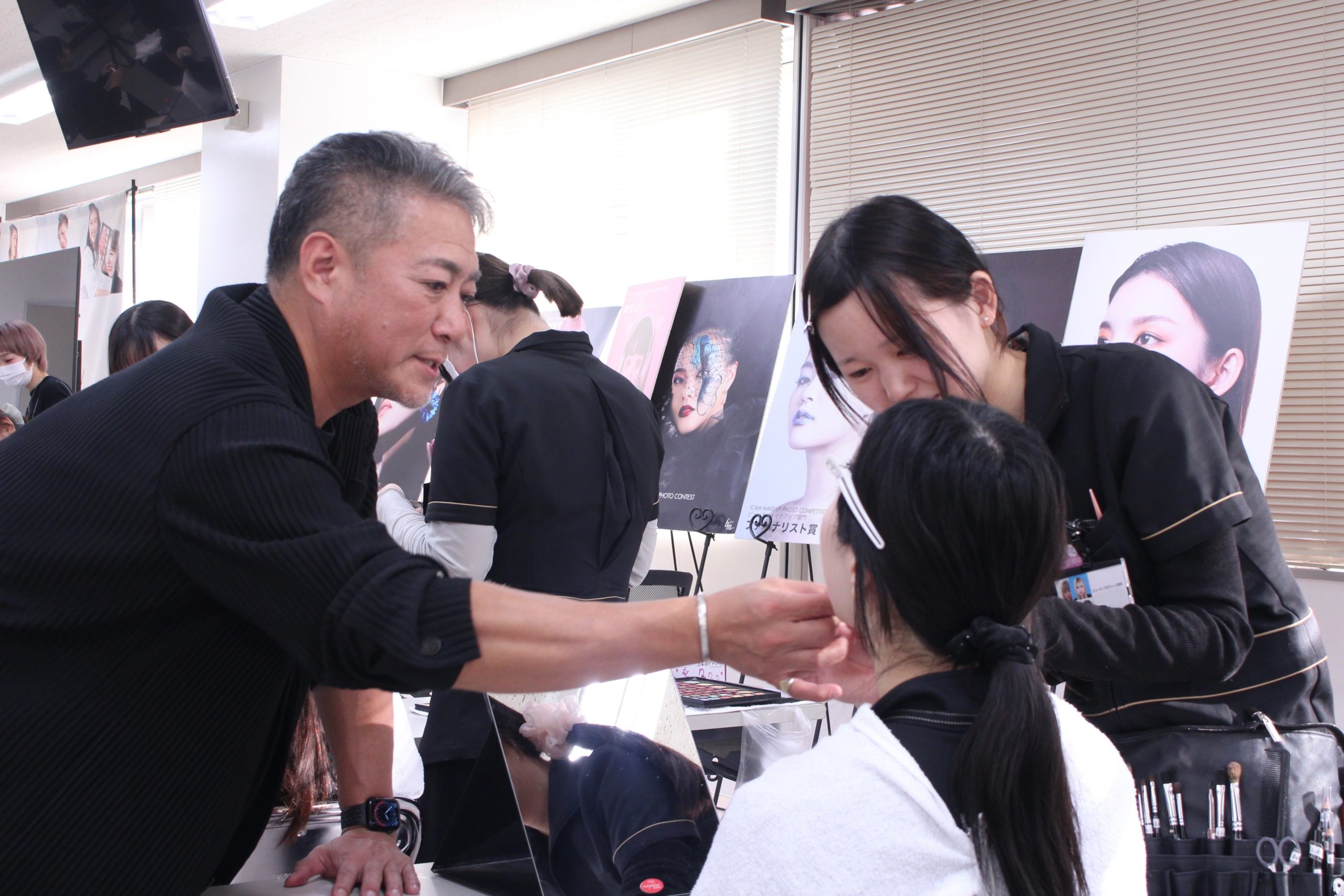 実際に学生同士相モデルでクリエイティブメイクを施術!