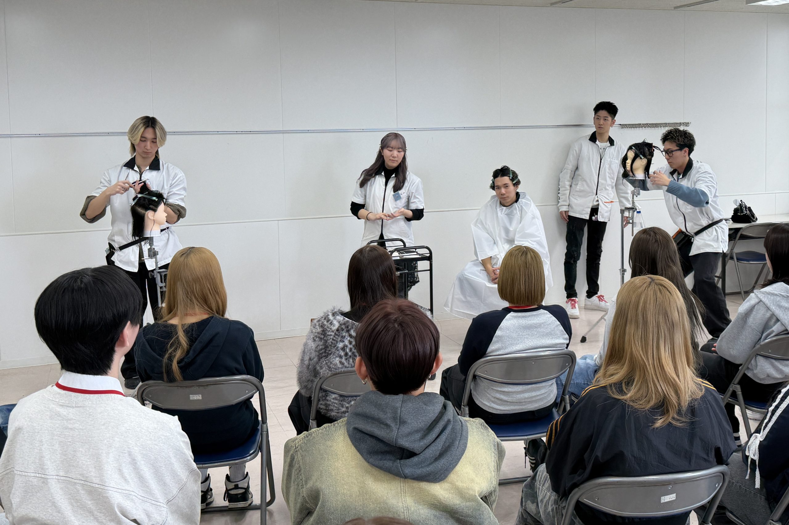 カット・ヘアメイクのデモンストレーションを見たり、