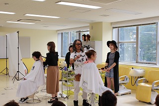 BMの学生から5名を選んで実際に「カット」と「ヘアメイク」の技術を披露していただき