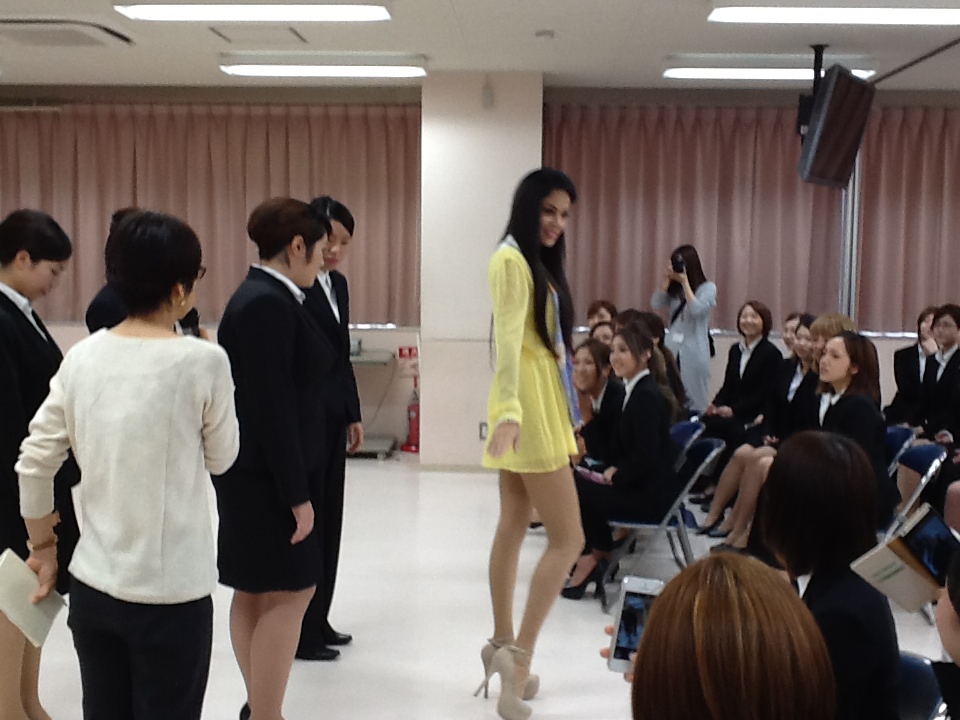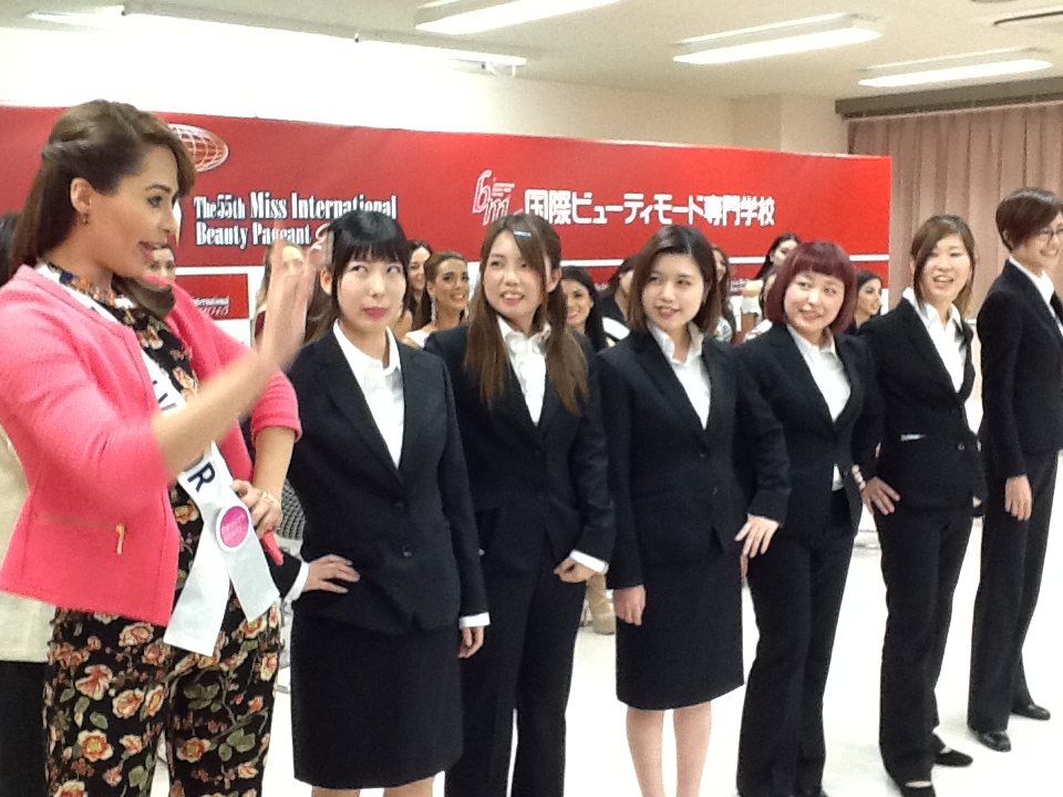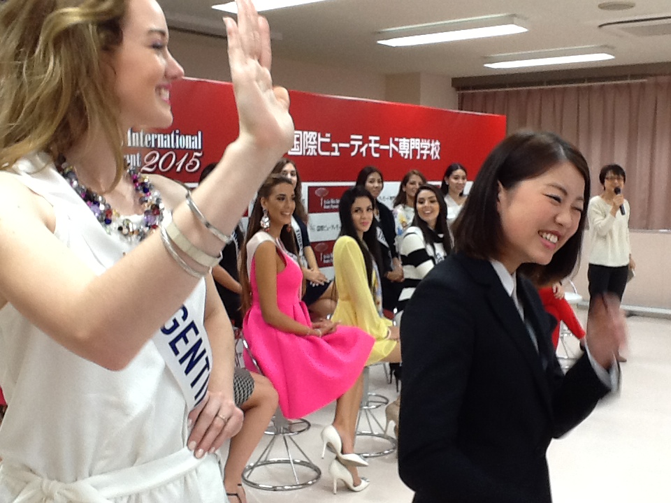 各国のミスたちは、トータルエステティック学科とビューティプロデュース学科の学生たちが待つ教室へ・・・