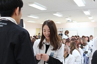 “お守り”を担任の先生方から学生一人ひとりに手渡しします(>_<)
