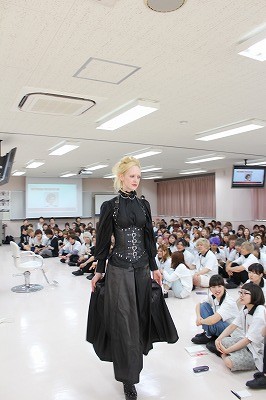 ジェニーさんがウォーキングすると、トップモデルの美しさに学生達から大歓声があがります(≧▽≦)